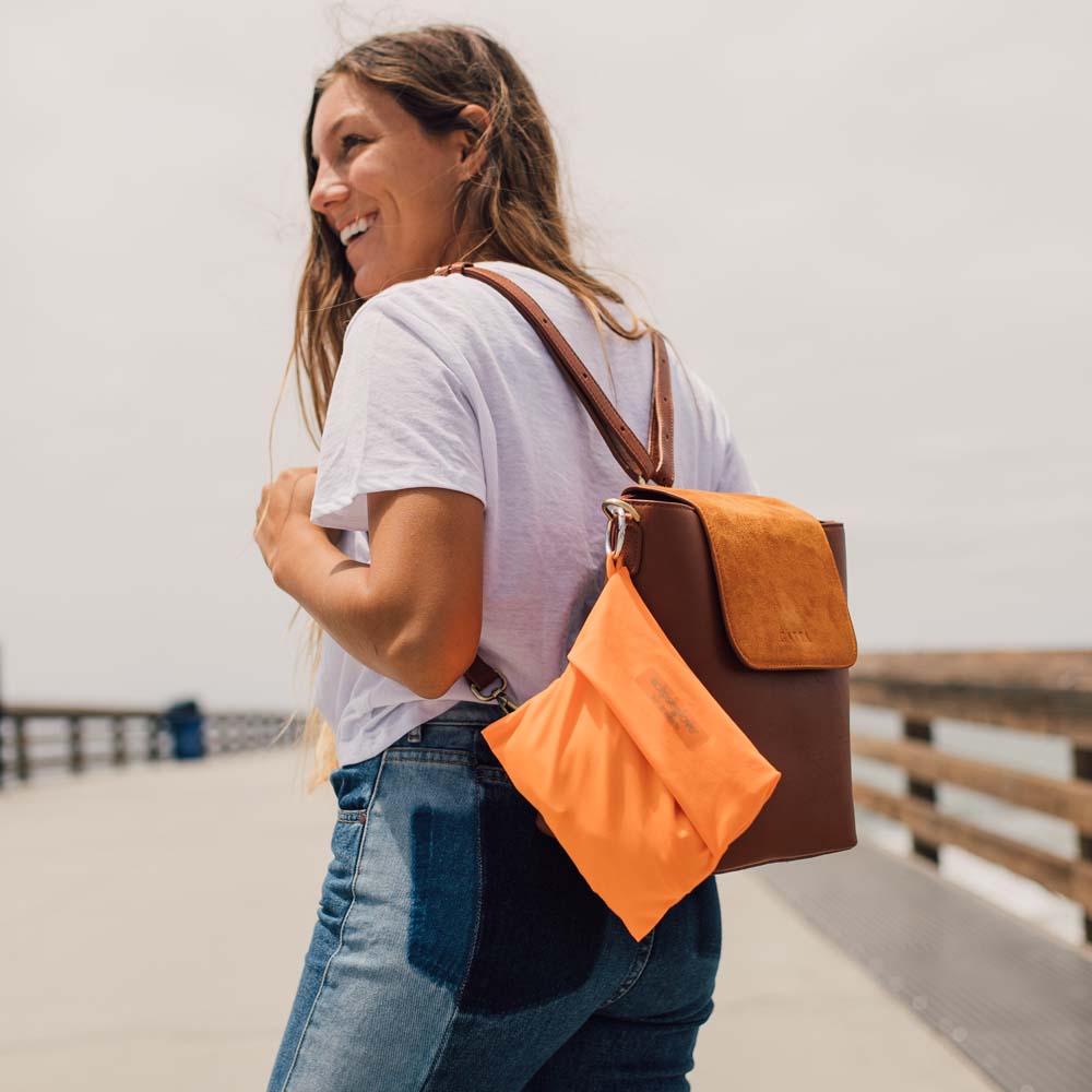 You can stow and transport your sun protection efficiently and in style. Great for travel. The small pouch, measuring 3.5 x 5 inches will carry a pair of Eclipse Sun Sleeves or Eclipse Sun Gloves. The large pouch, measuring 6 x 7 inches will carry an Eclipse Sun Shawl or Eclipse Gaiter.